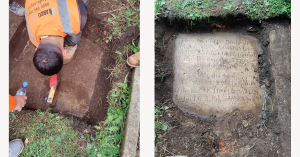 We were unable to dig to the depth we wanted because just below the surface, was a buried ledger stone.
